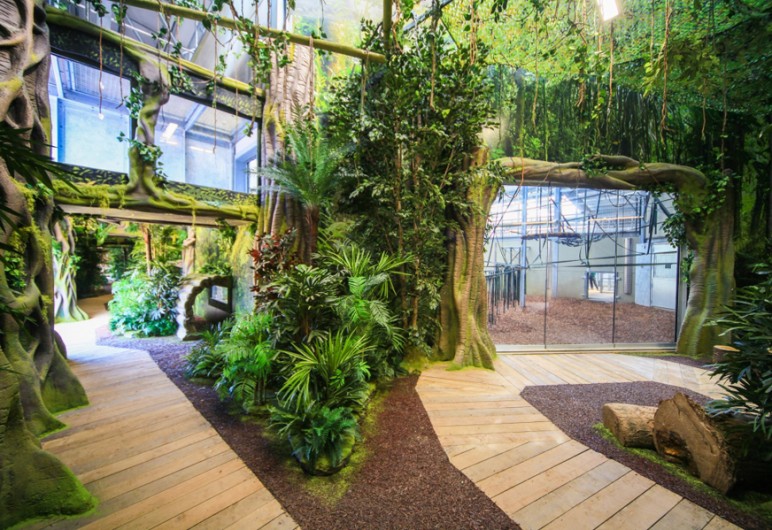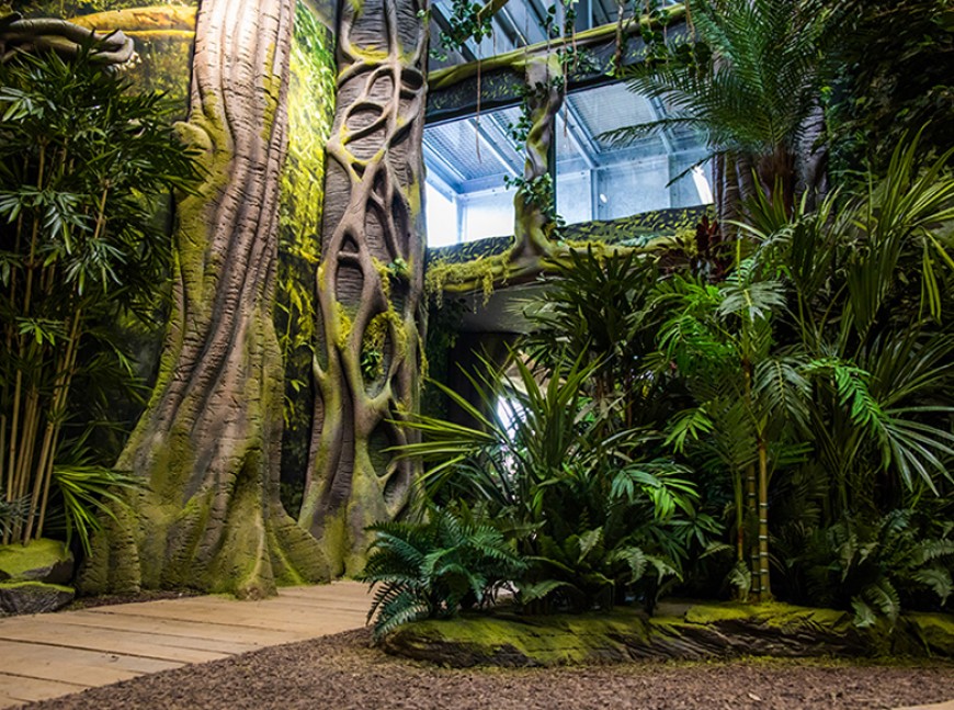 The themed landscaped interior gives visitors an immersive educational jungle experience.